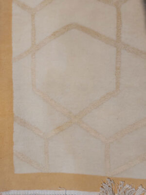 Modern Hexagonal Geometric Rug | 6.3×9.8 ft | Minimalist Cream & Sand Luxury Carpet