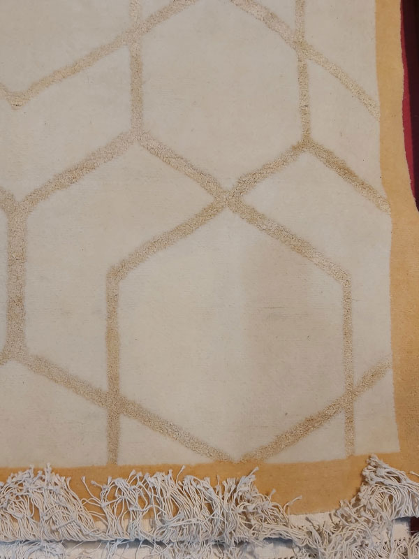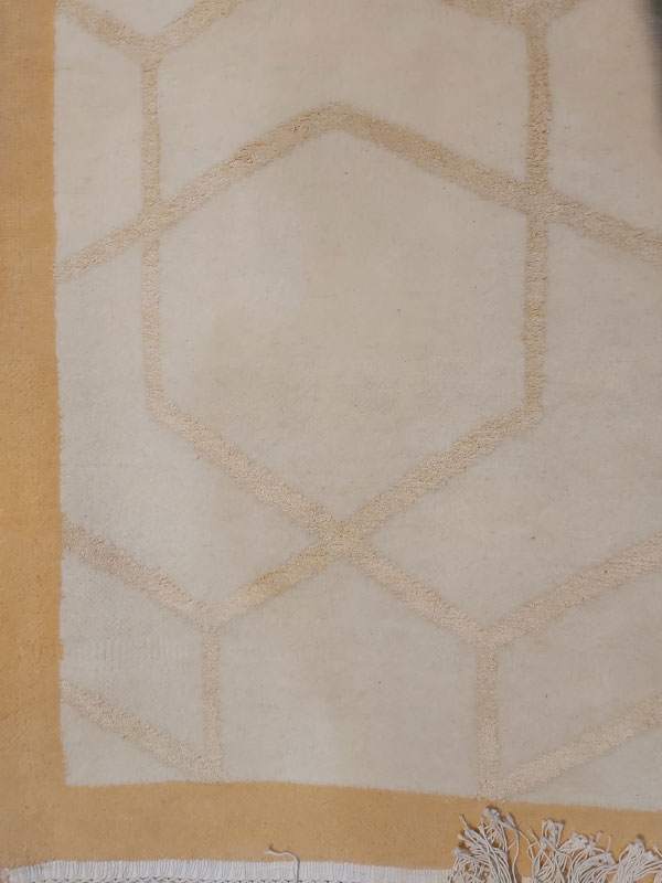 Modern Hexagonal Geometric Rug | 6.3×9.8 ft | Minimalist Cream & Sand Luxury Carpet