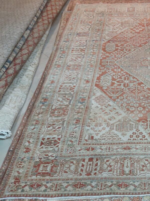 • Rotation: Rotate the Antique Geometric Carpet $180^\circ$ annually to ensure the navy field wears evenly, especially if exposed to direct afternoon sun.
