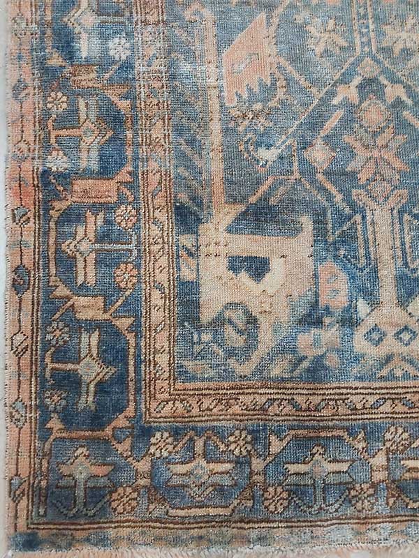 Be the first to review “Vintage Distressed Borujerd Runner | 4×8.3 ft | Navy Blue and Cream Geometric Tribal Carpet”