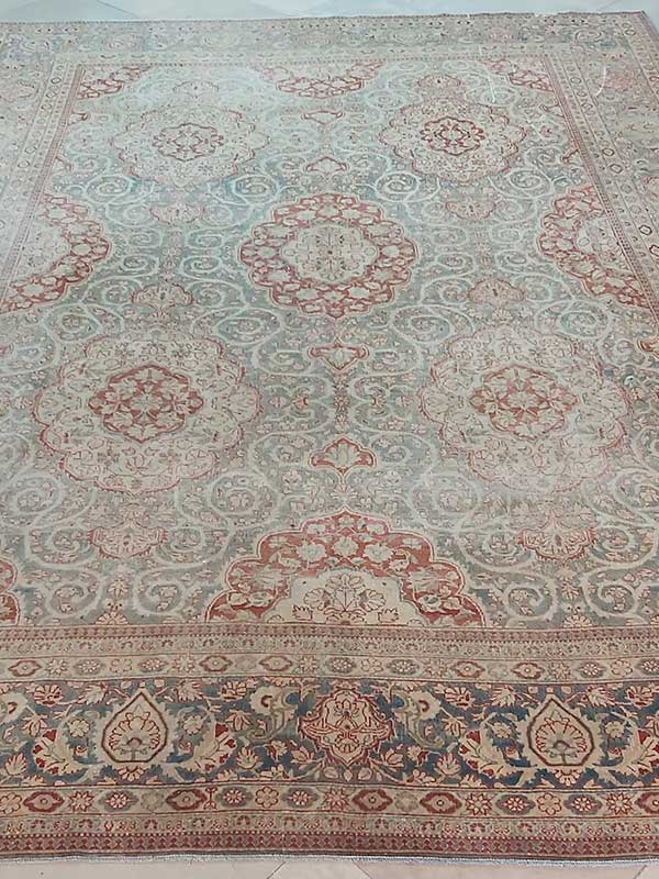 The Antique Ivory and Slate Blue Wool Carpet specifically appeals to those who favor a cool, calming palette. The Large Vintage Area Rug scale ensures that the Traditional Medallion Carpet design is fully visible, even when partially tucked under a bed or dining table. Furthermore, the Hand-Knotted Persian Area Rug construction means the density of the knots remains high, providing a Rustic Luxury Flooring option that is as durable as it is beautiful. Investing in this Vintage Distressed Muted Medallion Area Rug is an investment in a piece that will only continue to gain character over the next generation.